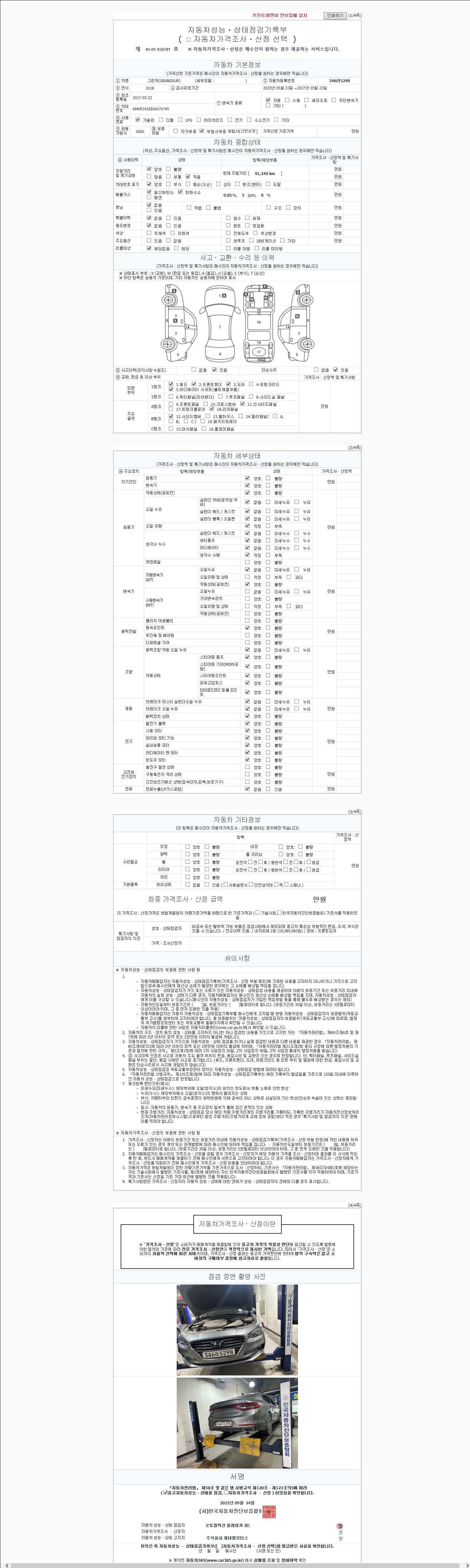 2. 차량 등록증이나 성능점검지 등을 상담자에게 요청및 확인하시고 사전에 미리 점검 하시기를 권유드립니다.