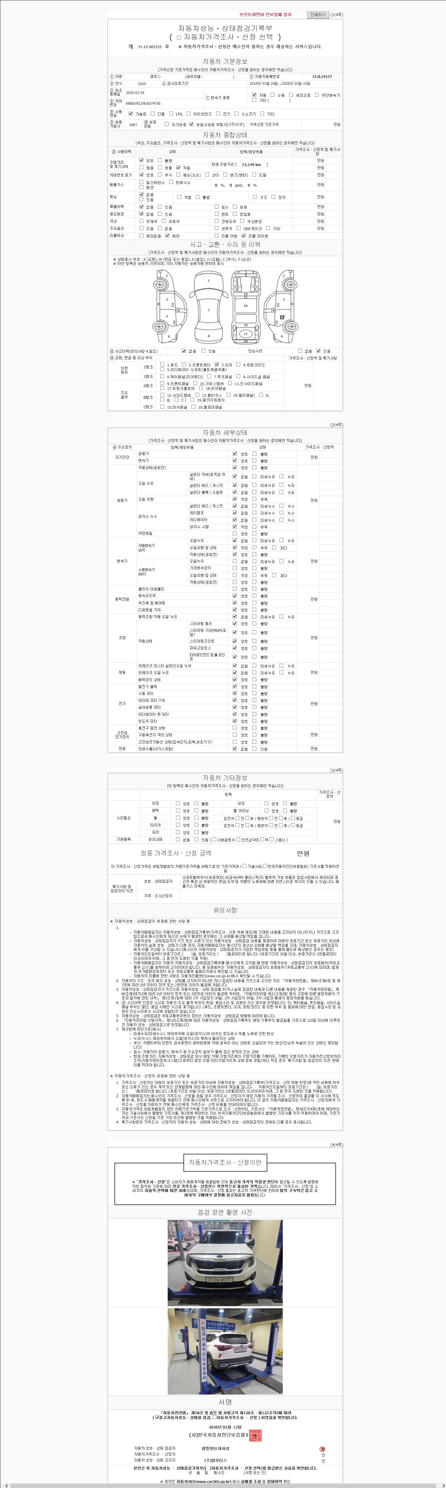 2. 차량 등록증이나 성능점검지 등을 상담자에게 요청및 확인하시고 사전에 미리 점검 하시기를 권유드립니다.