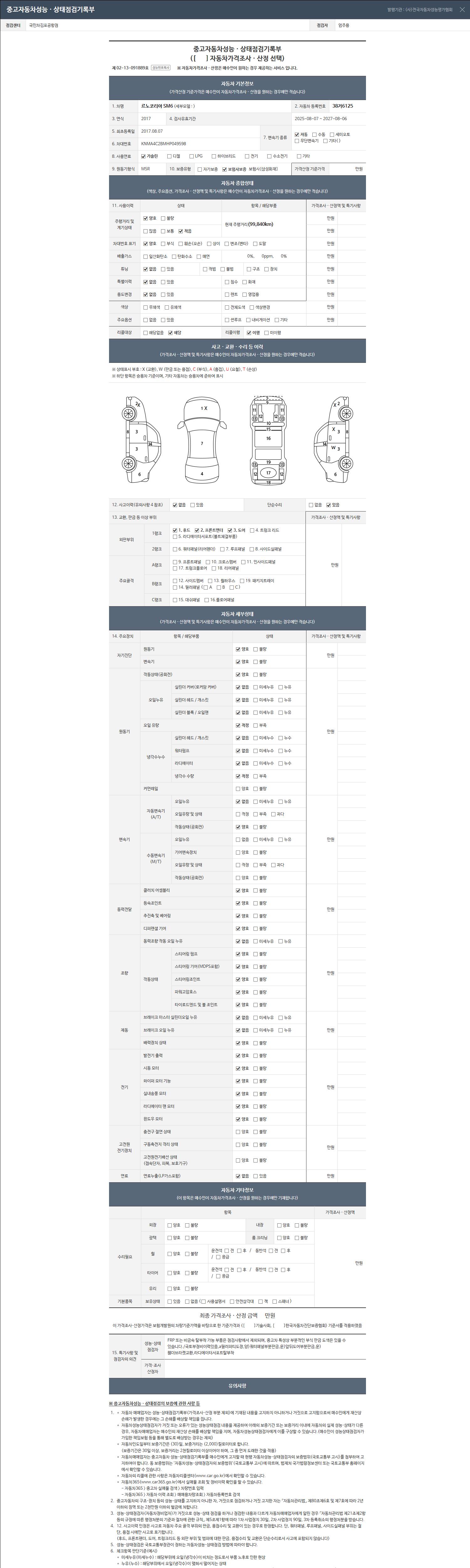 2. 차량 등록증이나 성능점검지 등을 상담자에게 요청및 확인하시고 사전에 미리 점검 하시기를 권유드립니다.