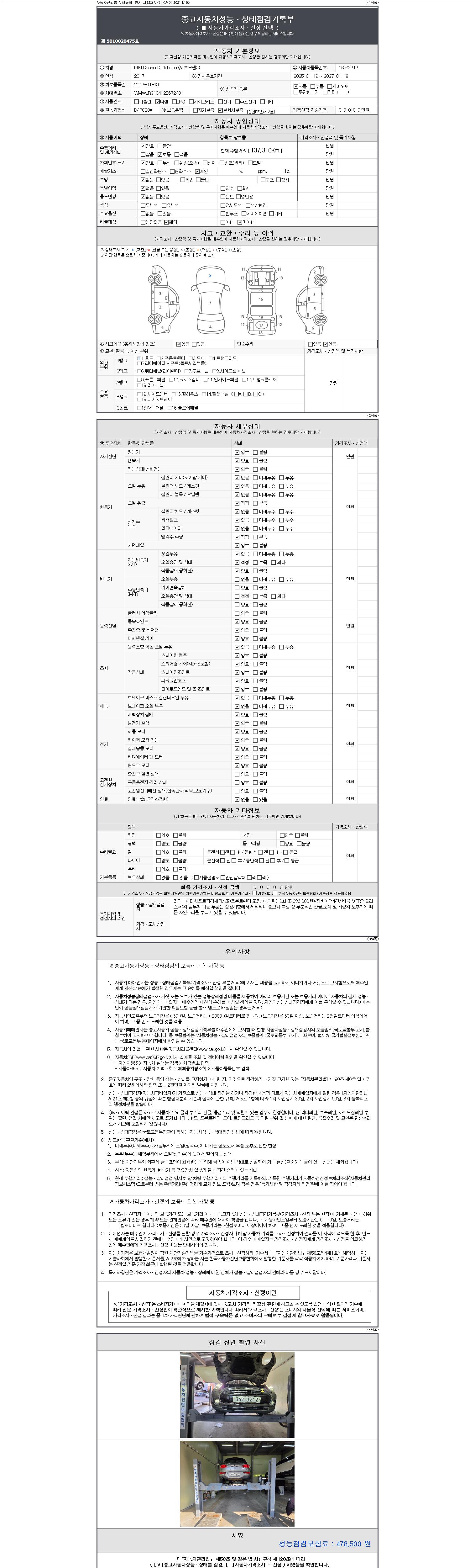 2. 차량 등록증이나 성능점검지 등을 상담자에게 요청및 확인하시고 사전에 미리 점검 하시기를 권유드립니다.