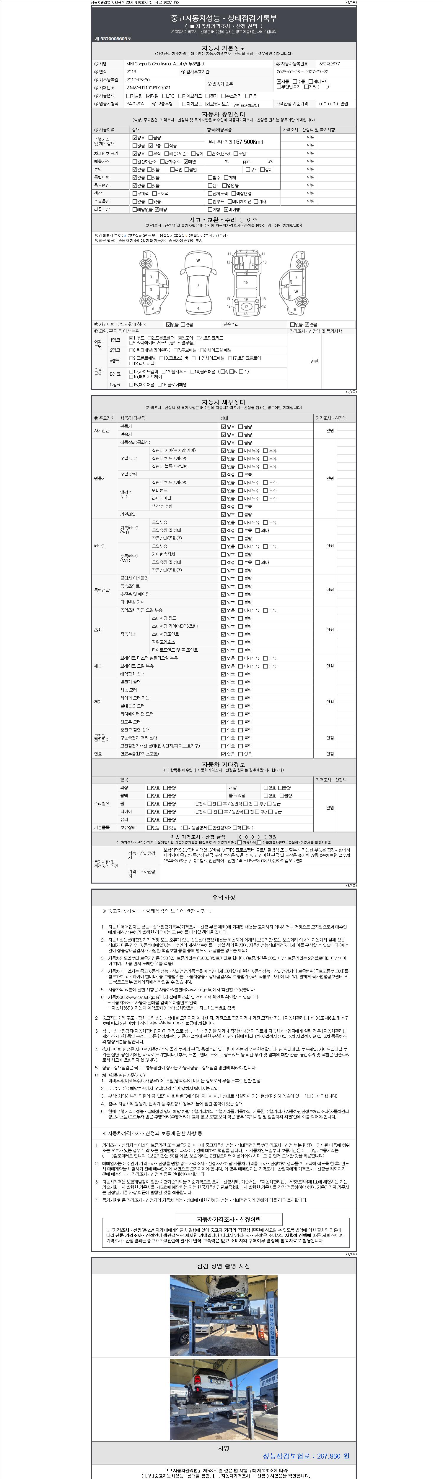 2. 차량 등록증이나 성능점검지 등을 상담자에게 요청및 확인하시고 사전에 미리 점검 하시기를 권유드립니다.