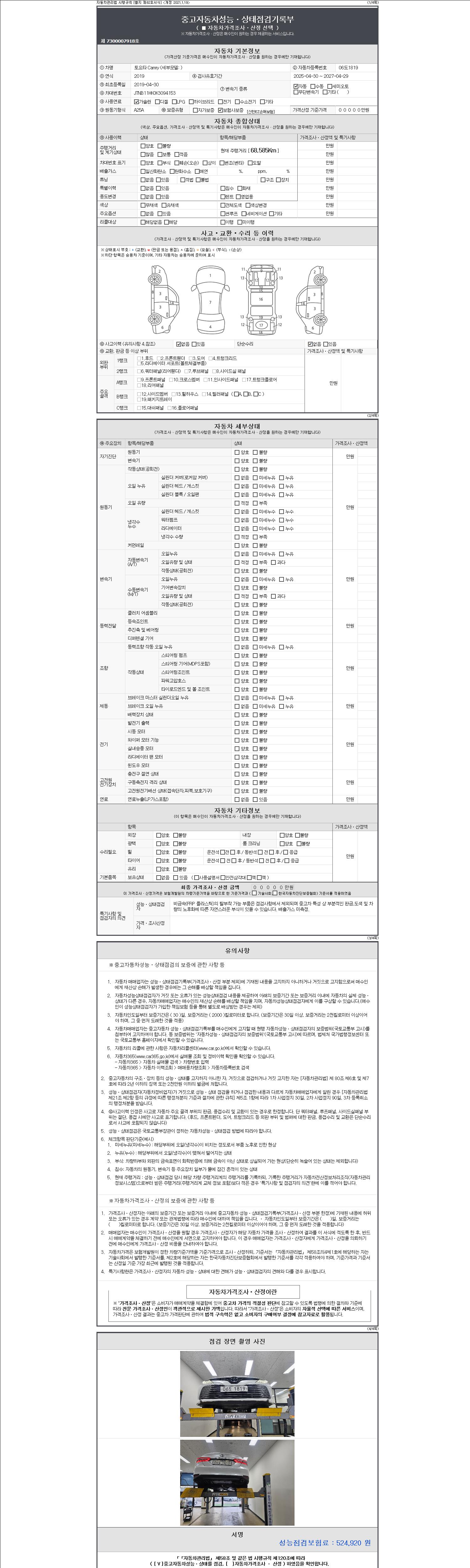 3. 차량의 이미지중 차량번호가 의도적으로 가공, 편집 된 경우나 지나치게 가격이 낮을 경우 더욱 세심한 주위를 요구합니다.