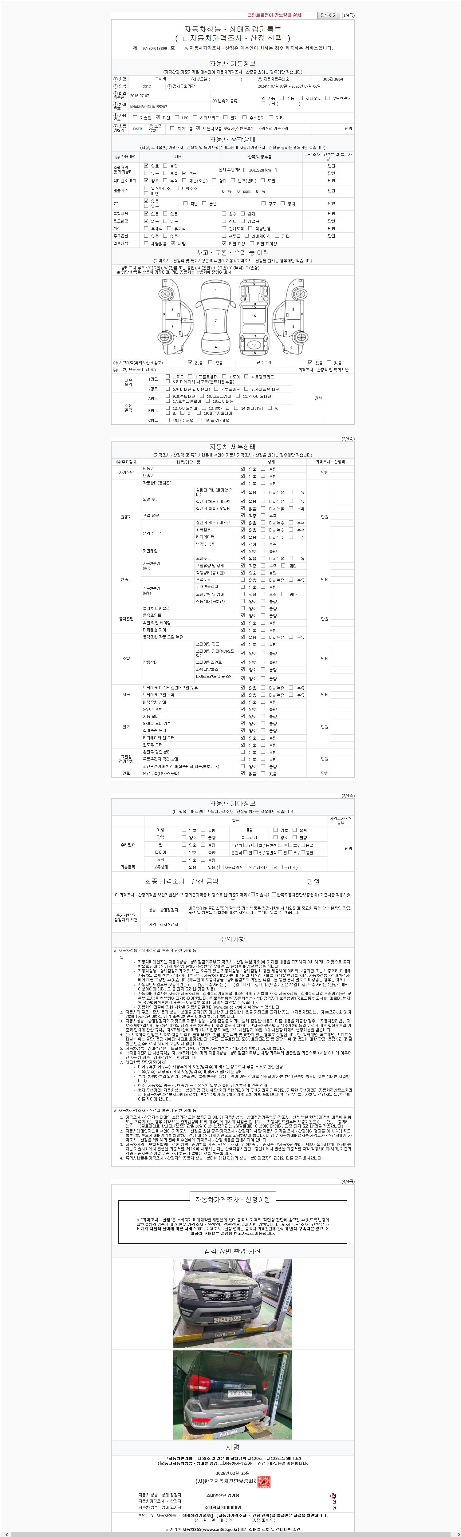 2. 차량 등록증이나 성능점검지 등을 상담자에게 요청및 확인하시고 사전에 미리 점검 하시기를 권유드립니다.