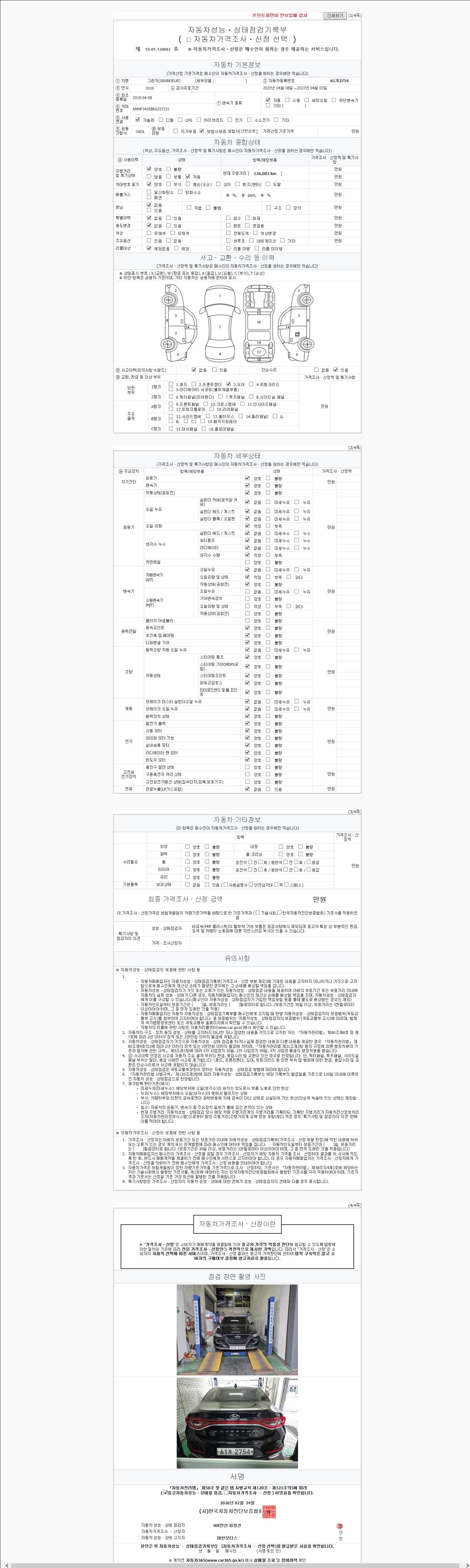 오토|휘발유|2019년 4월|126,003 km 61가2754| cc|검정색 |