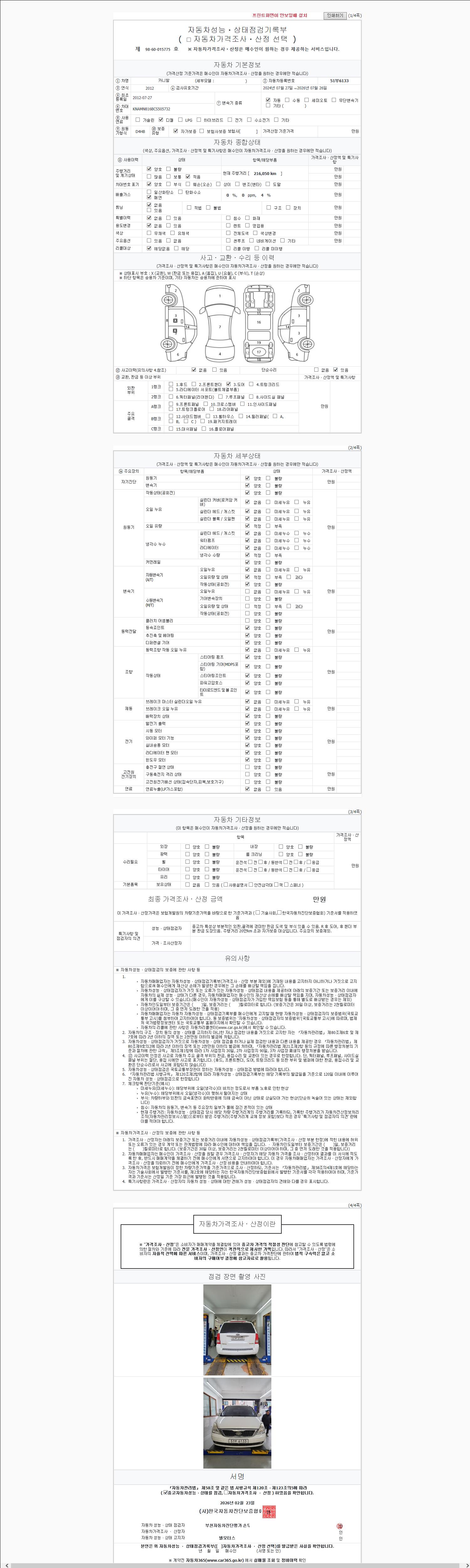 사고유무 성능기록부 참조 제시번호 제 2026034499 호