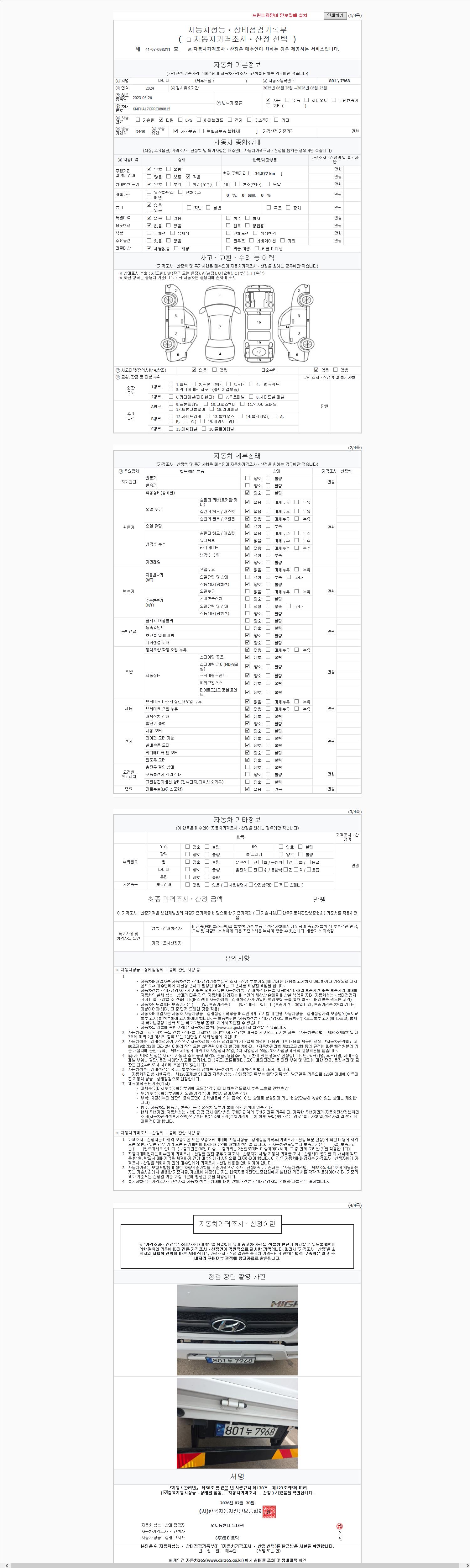 2. 차량 등록증이나 성능점검지 등을 상담자에게 요청및 확인하시고 사전에 미리 점검 하시기를 권유드립니다.