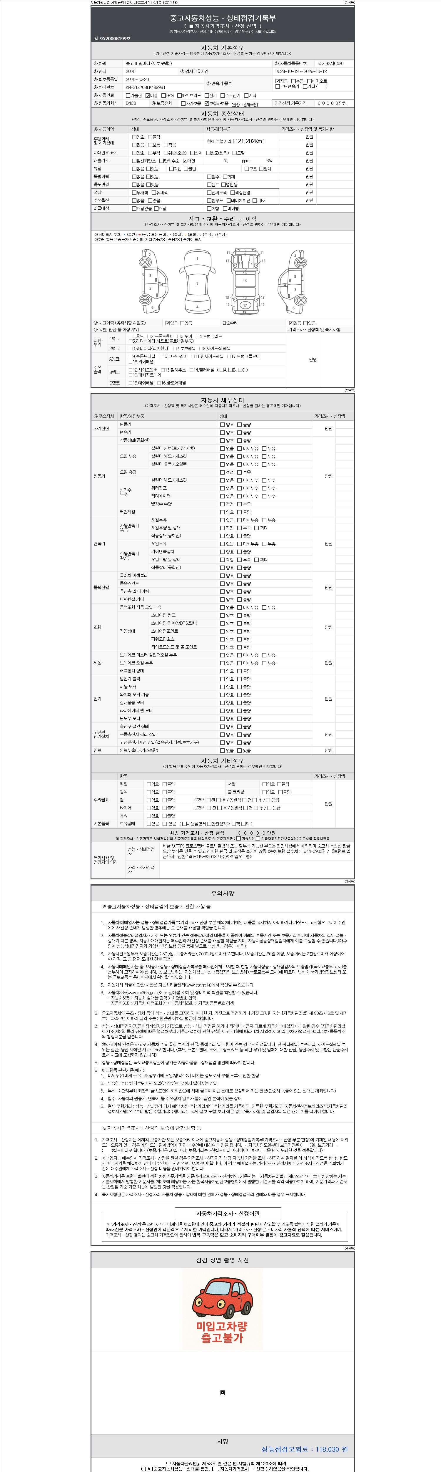 -중고자동차 매매업자를 통해 차량을 구입하실 경우 반드시 "중고자동차 성능, 상태점검 기록부"를 교뷰 받으셔야 하며, 매매업자는 반드시 의무 교부 하여야 압니다.