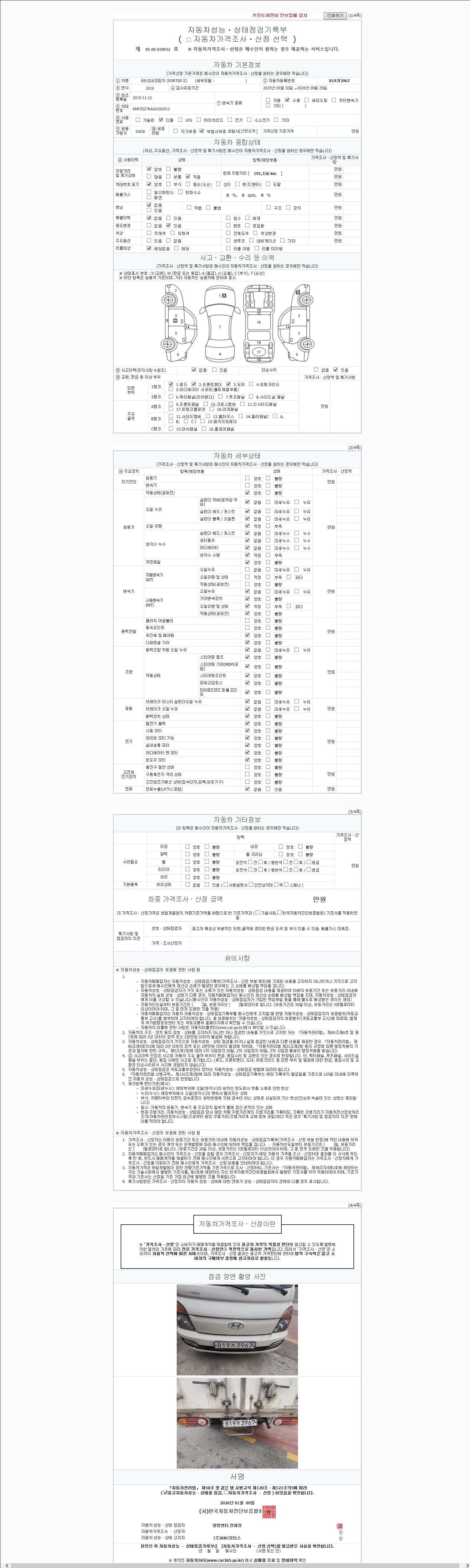 2. 차량 등록증이나 성능점검지 등을 상담자에게 요청및 확인하시고 사전에 미리 점검 하시기를 권유드립니다.
