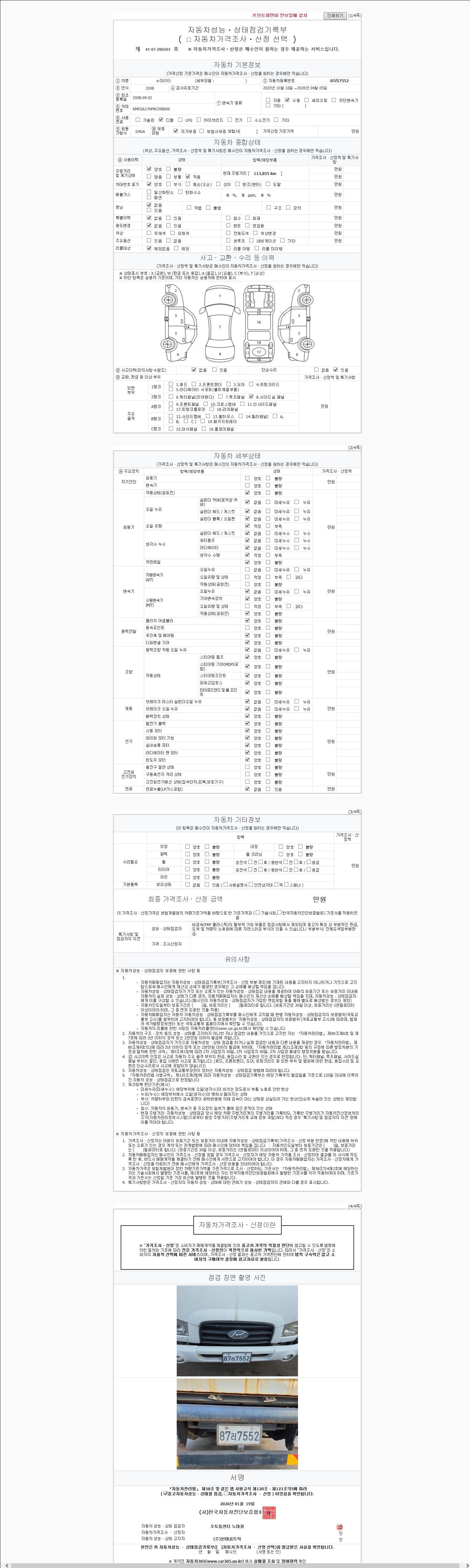 | 주행거리 | 113,847 km | 차량번호 | 87러7552 |