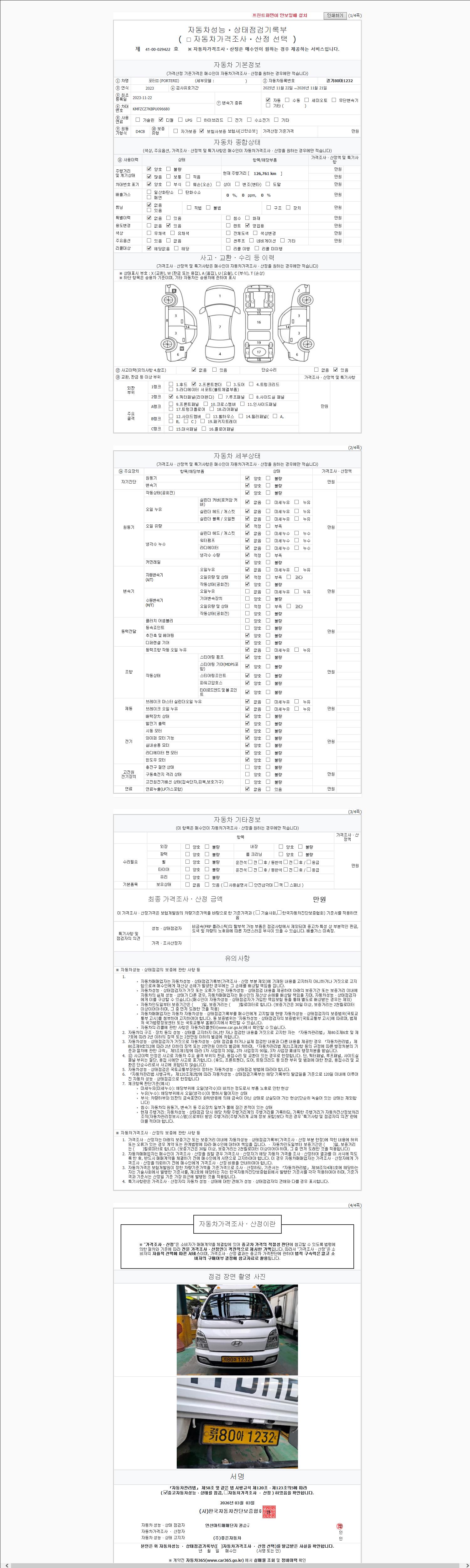 오토|경유|2023년 11월|126,727 km 경기80아1232| cc|흰색 |