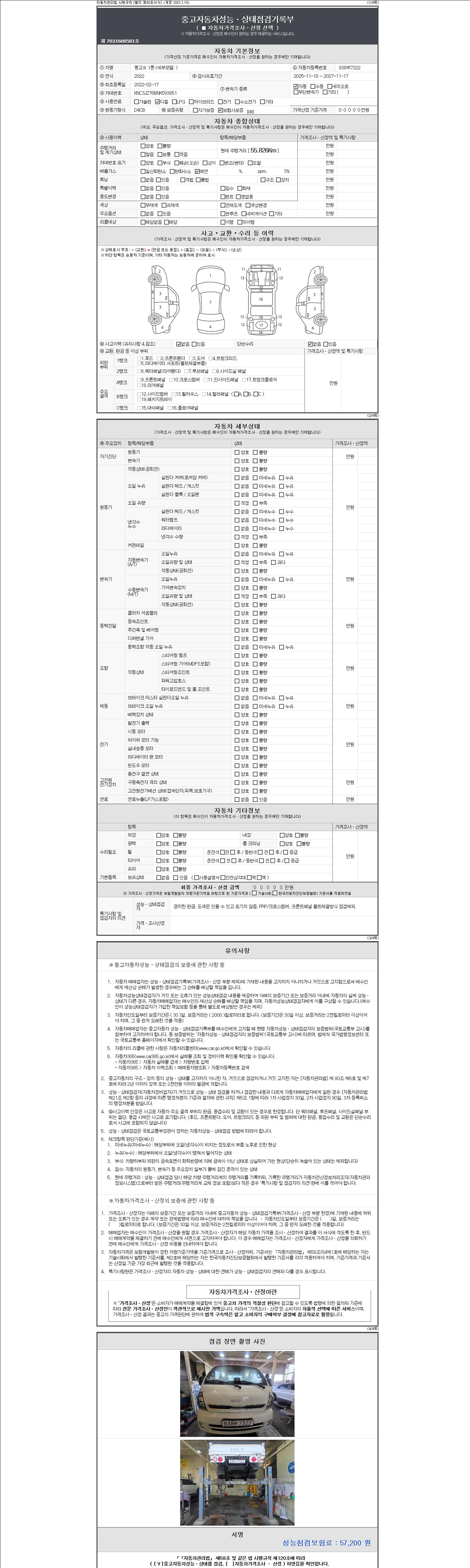 | 주행거리 | 55,826 km | 차량번호 | 838버7322 |