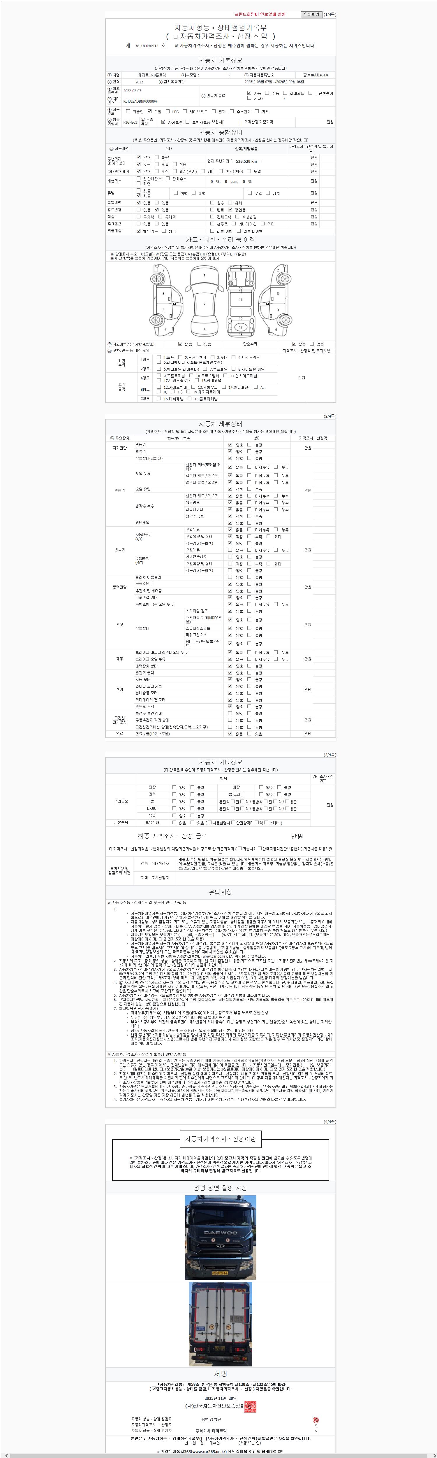 사고유무 성능기록부 참조 제시번호 제 2147483647 호