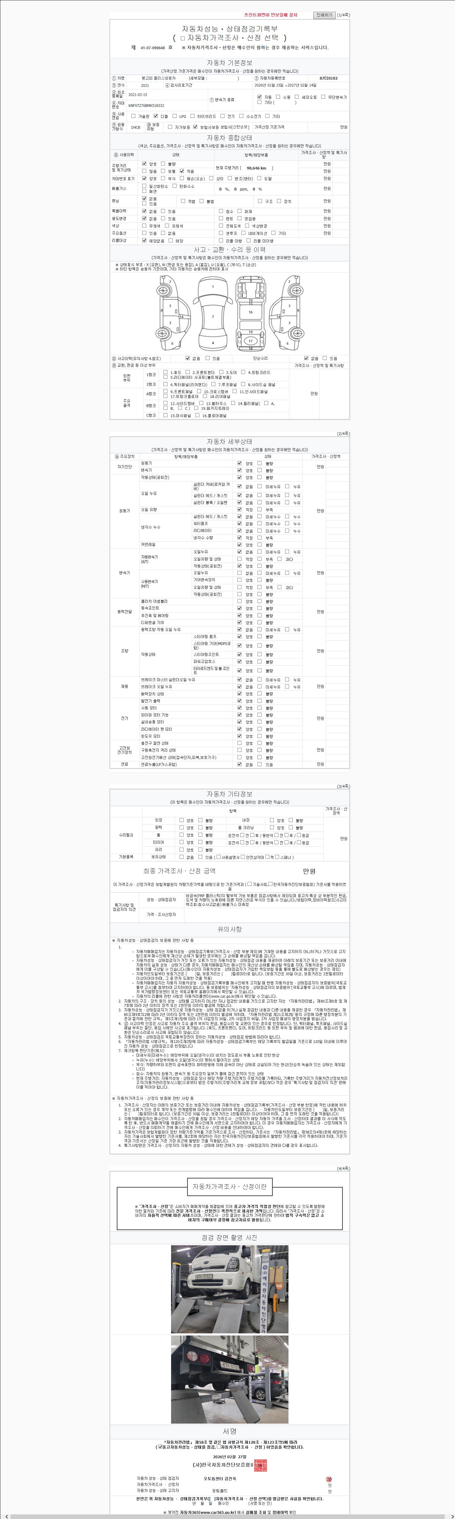 오토|경유|2021년 2월|98,646 km 87더0102| cc|흰색 |