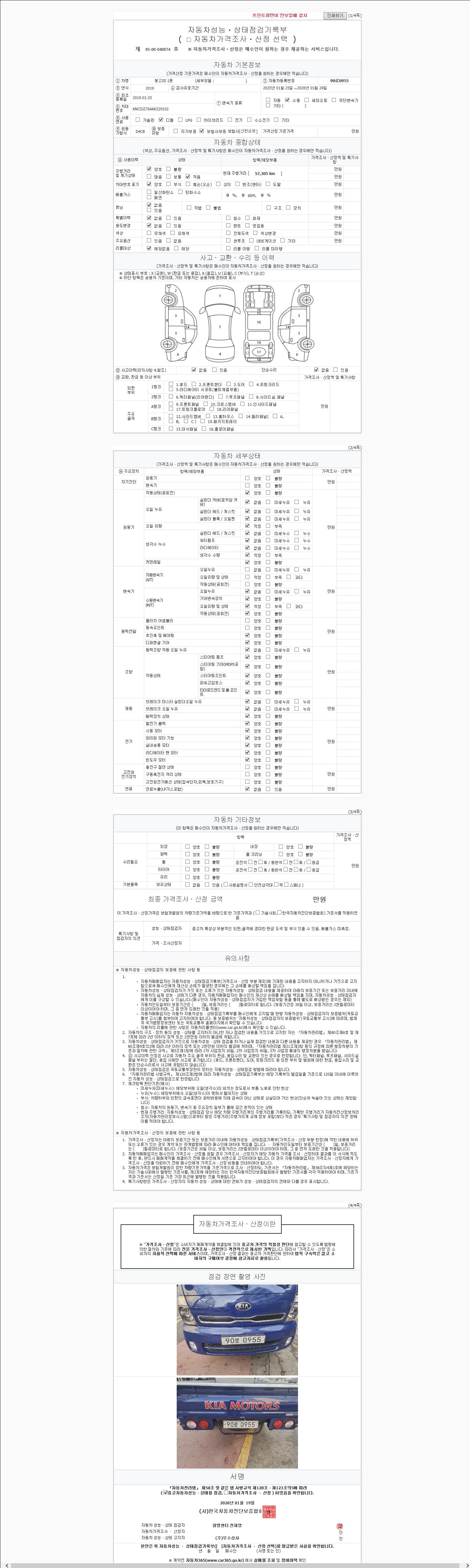 | 주행거리 | 57,305 km | 차량번호 | 90로0955 |