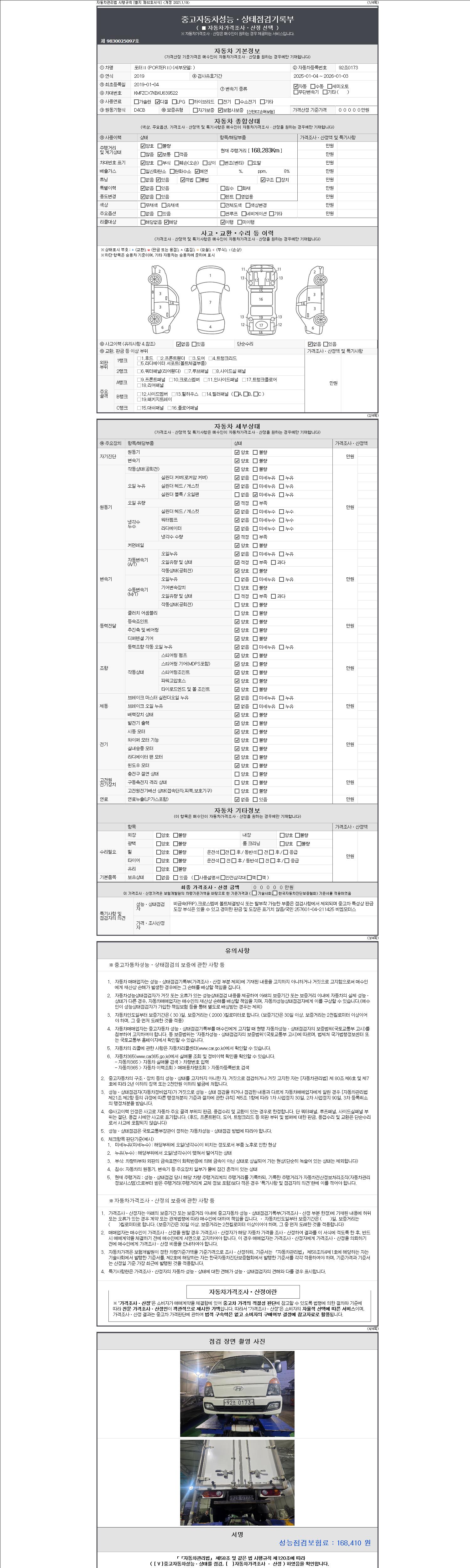 주행거리 168,283 km 차량번호 92조0173