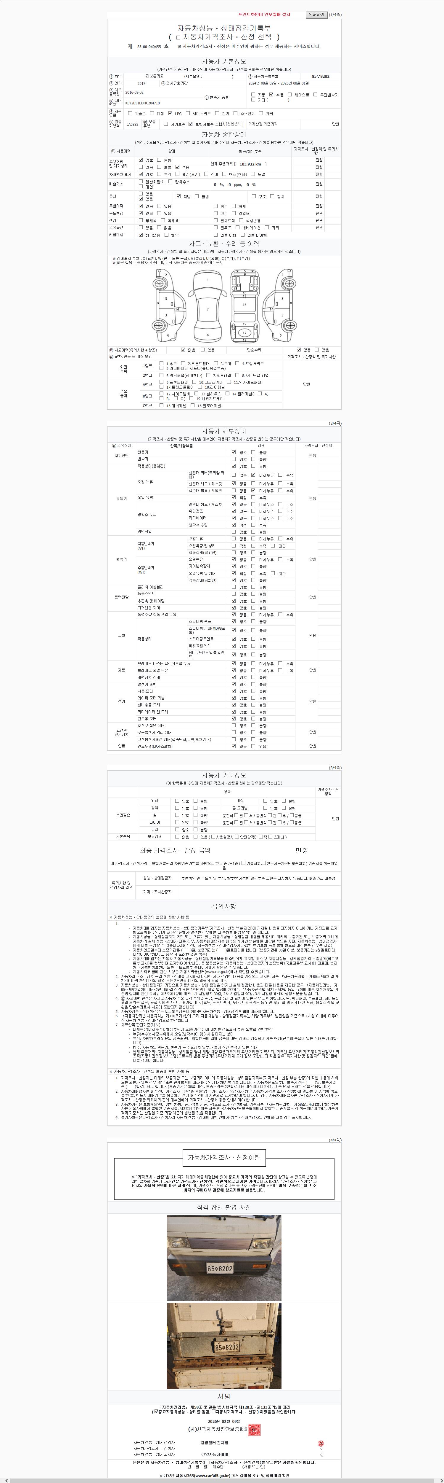2. 차량 등록증이나 성능점검지 등을 상담자에게 요청및 확인하시고 사전에 미리 점검 하시기를 권유드립니다.