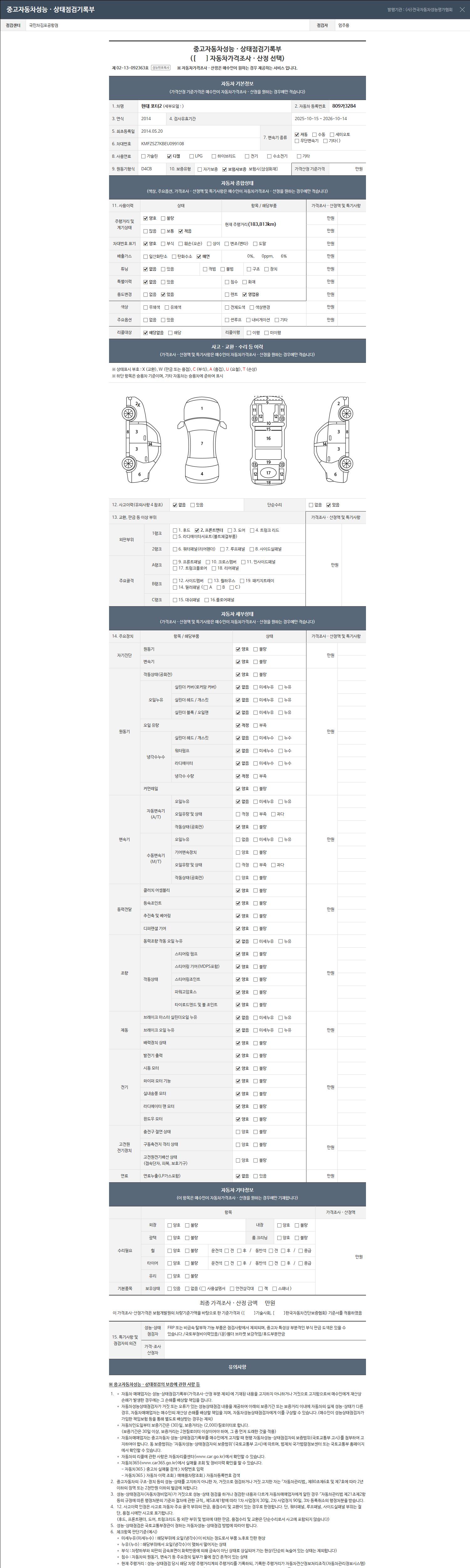 2. 차량 등록증이나 성능점검지 등을 상담자에게 요청및 확인하시고 사전에 미리 점검 하시기를 권유드립니다.