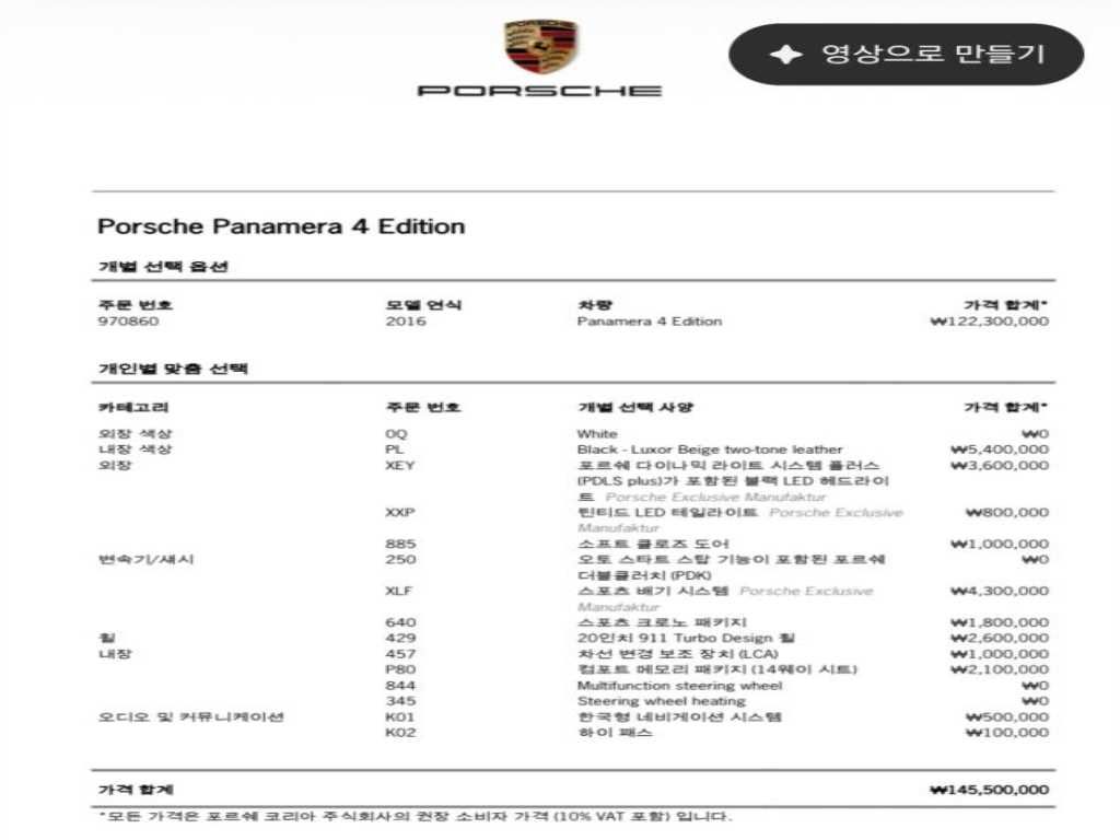 포르쉐 파나메라 파나메라 (09~16년) 3.6 AWD |