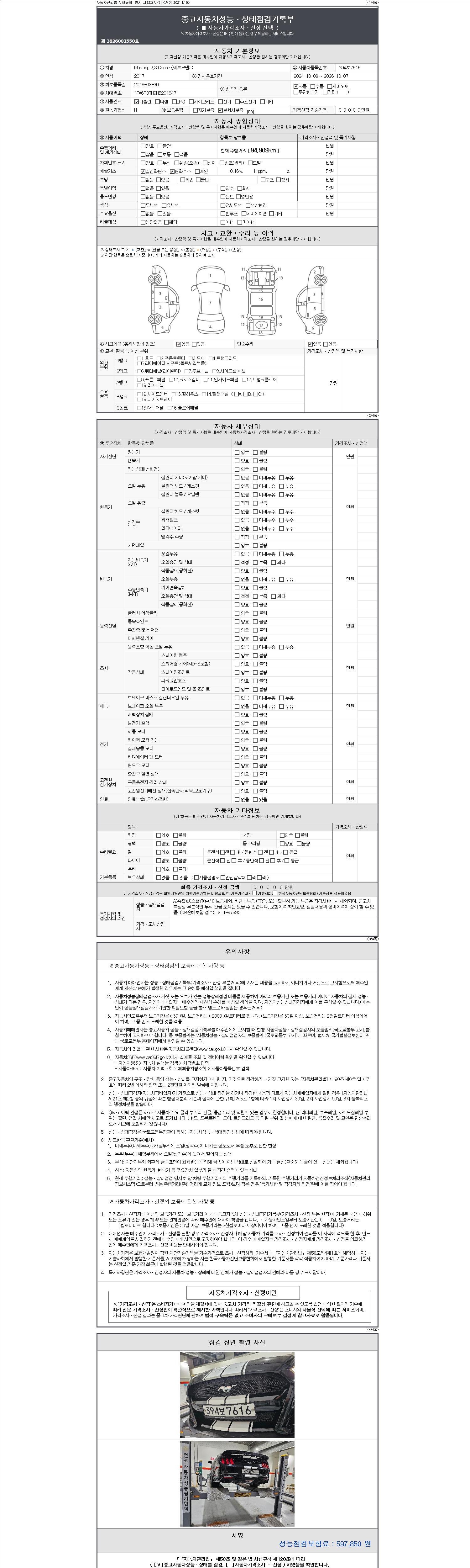 | 주행거리 | 94,879 km | 차량번호 | 394보7616 |