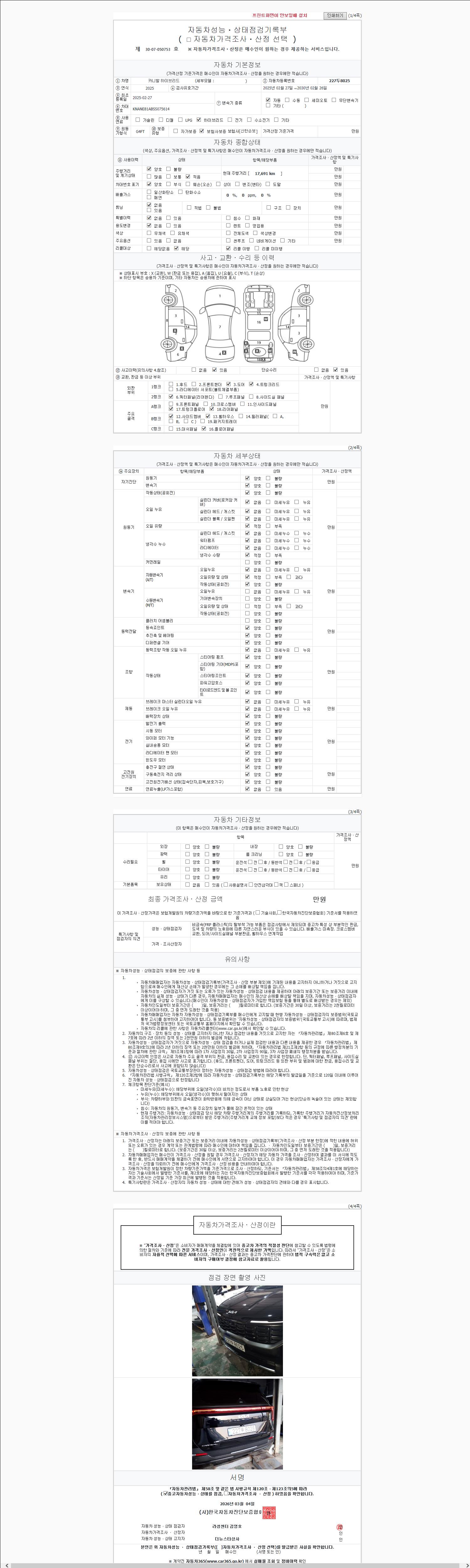 2. 차량 등록증이나 성능점검지 등을 상담자에게 요청및 확인하시고 사전에 미리 점검 하시기를 권유드립니다.
