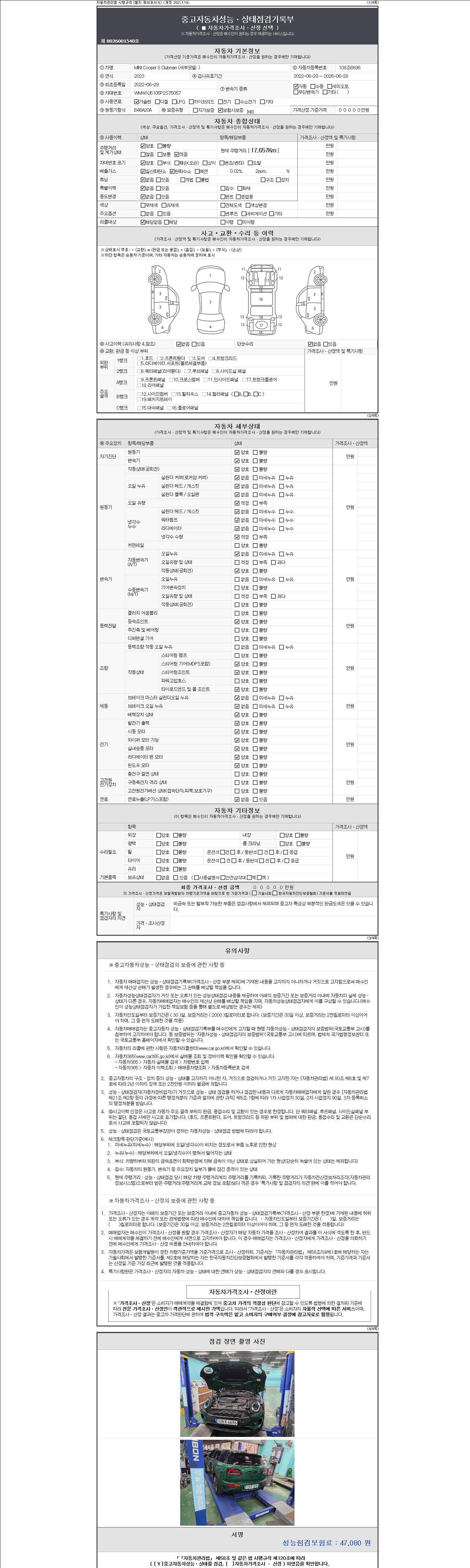-중고자동차 매매업자를 통해 차량을 구입하실 경우 반드시 "중고자동차 성능, 상태점검 기록부"를 교뷰 받으셔야 하며, 매매업자는 반드시 의무 교부 하여야 압니다.