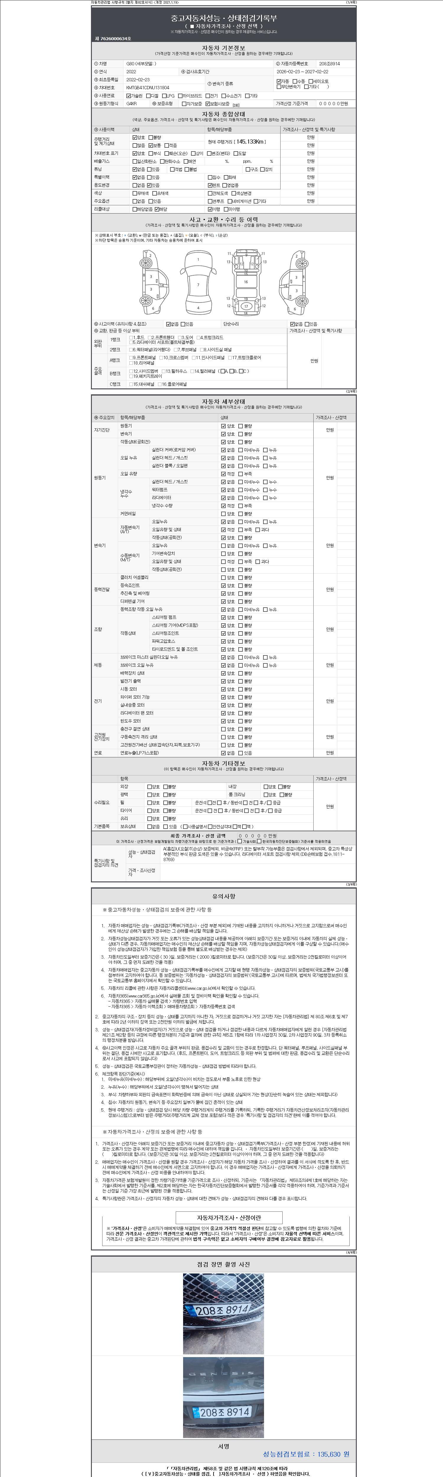 - 2. 차량 등록증이나 성능점검지 등을 상담자에게 요청및 확인하시고 사전에 미리 점검 하시기를 권유드립니다.