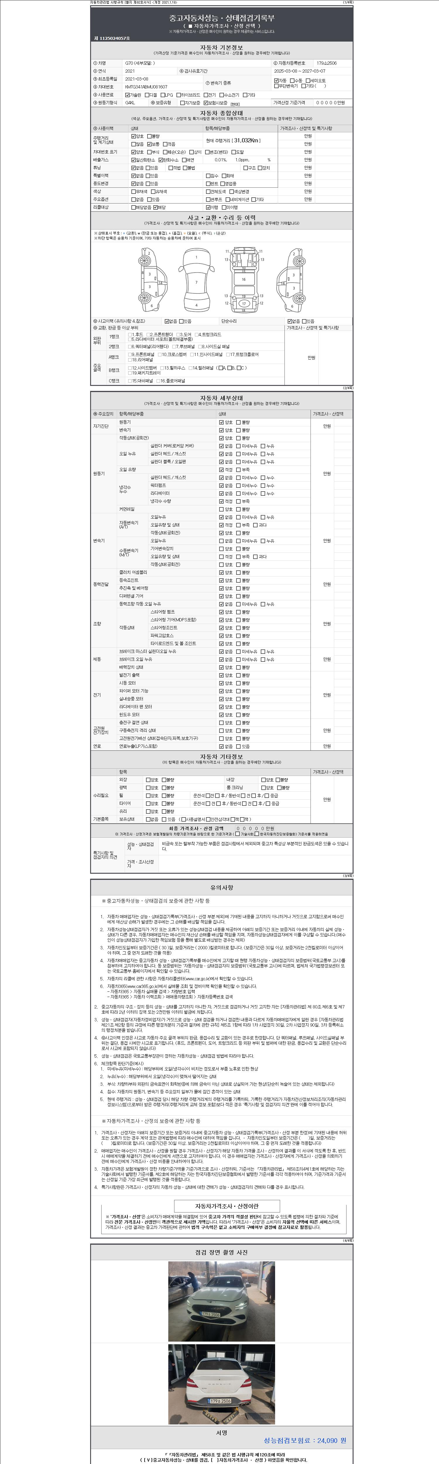 | 주행거리 | 31,032 km | 차량번호 | 179소2506 | 사고유무 | 성능기록부 참조 | 제시번호 | 제 2147483647 호 |