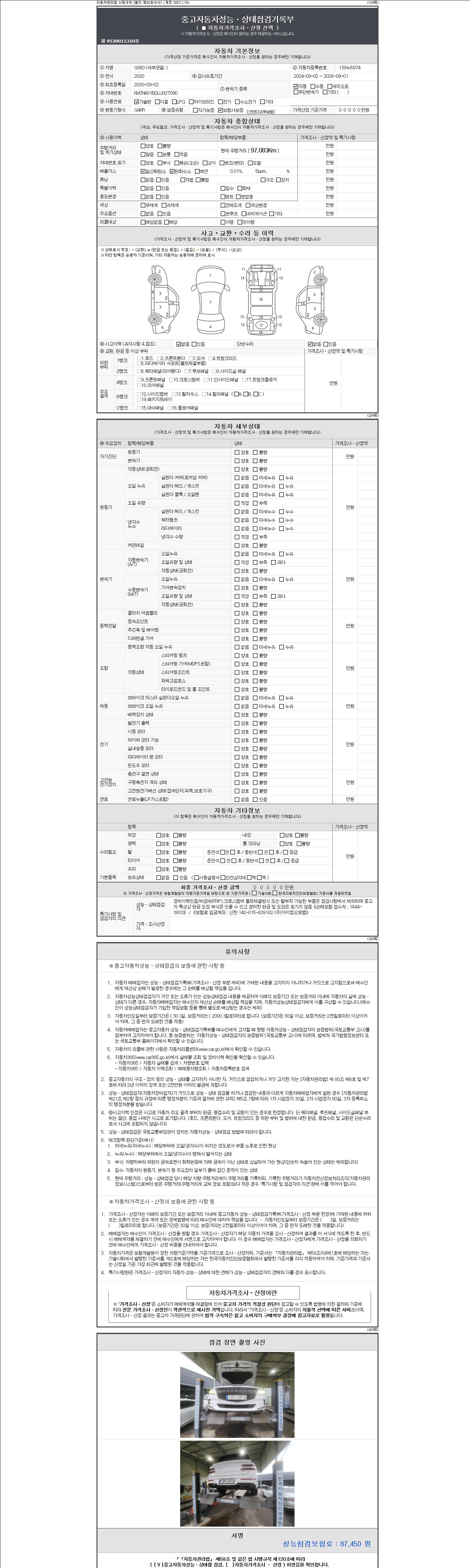 - 2. 차량 등록증이나 성능점검지 등을 상담자에게 요청및 확인하시고 사전에 미리 점검 하시기를 권유드립니다.