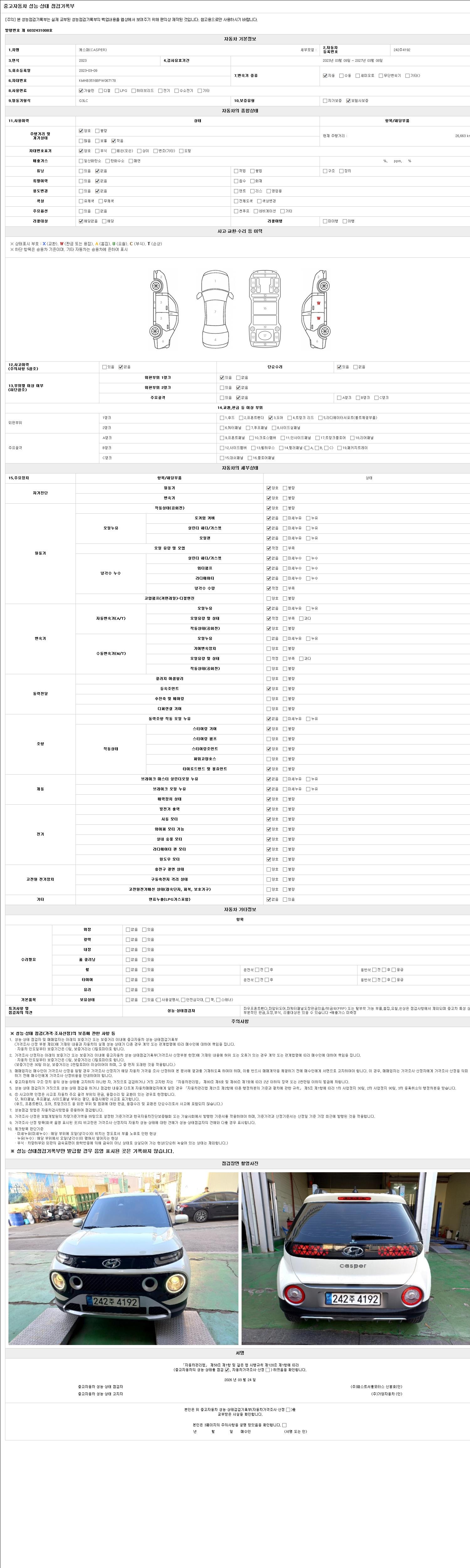 - 2. 차량 등록증이나 성능점검지 등을 상담자에게 요청및 확인하시고 사전에 미리 점검 하시기를 권유드립니다.