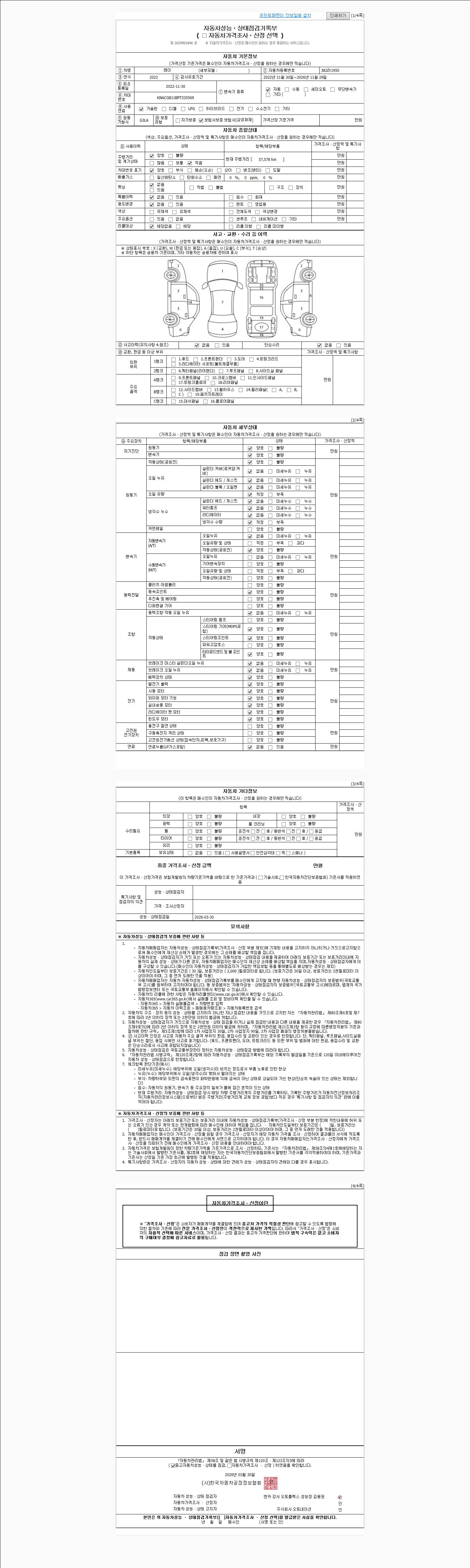 - 2. 차량 등록증이나 성능점검지 등을 상담자에게 요청및 확인하시고 사전에 미리 점검 하시기를 권유드립니다.