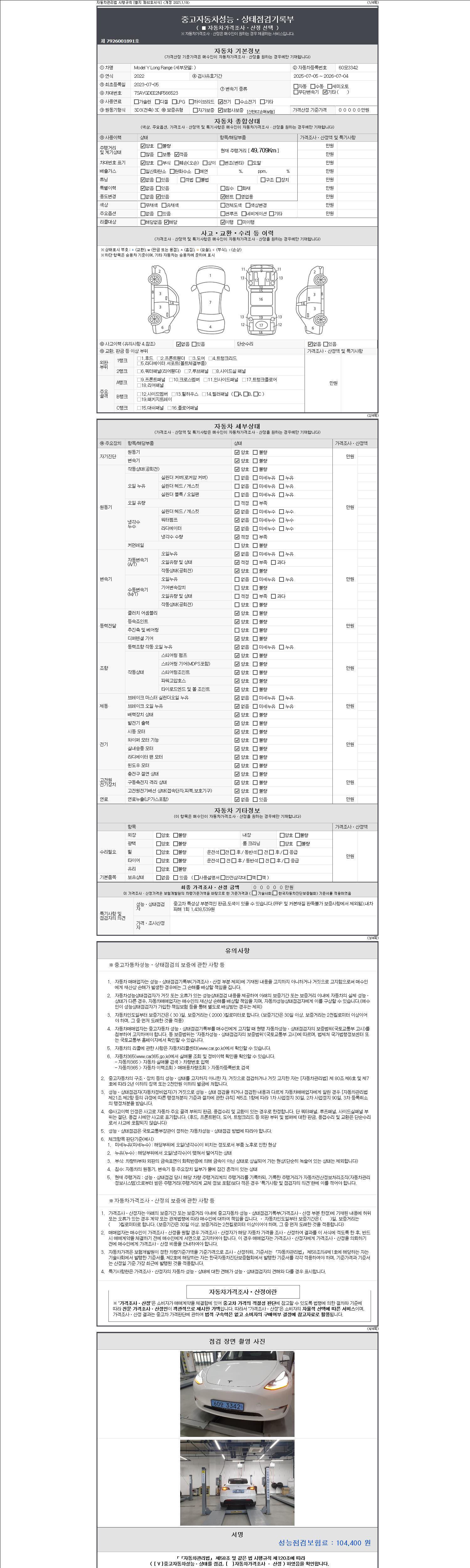 - 사고유무 : 성능기록부 참조